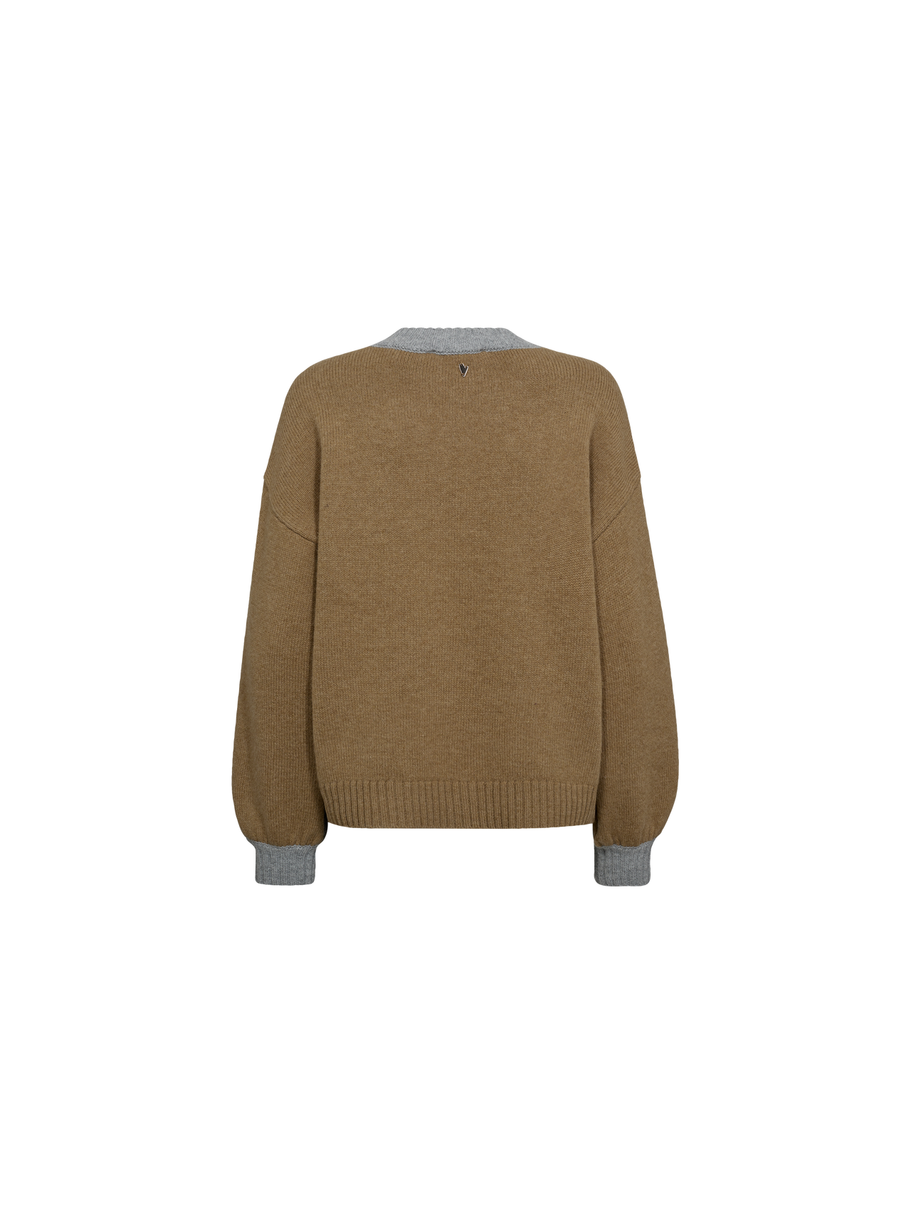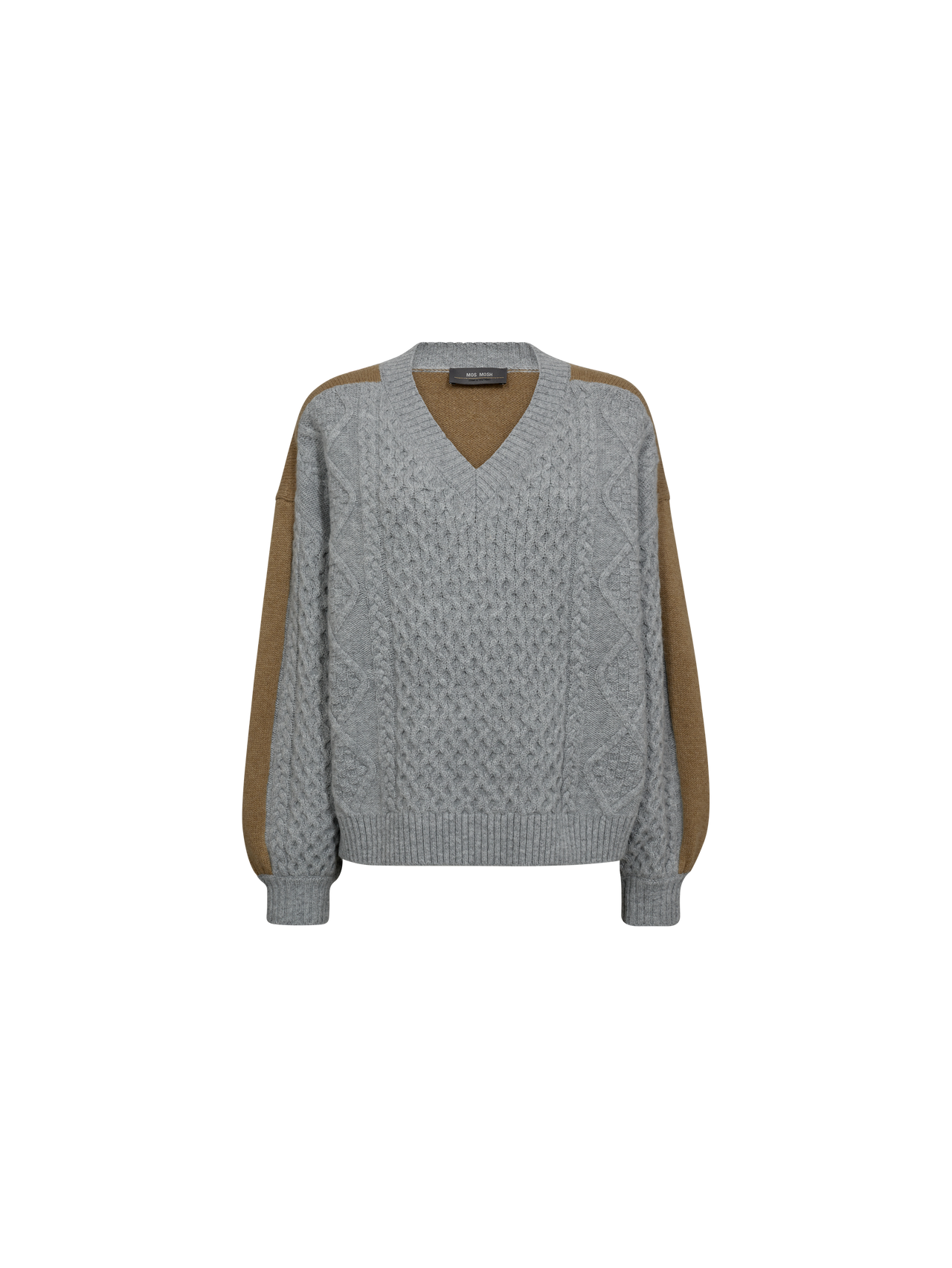 This elegant knit sweater is spun from a plush wool-alpaca-cashmere blend, offering a cosy oversized fit. The two-toned knit design features a structured cable pattern at the front and a smooth plain knit at the back, creating a sophisticated contrast. Finished with ribbed details at the V-neckline, cuffs, and hem, this piece is the perfect balance of comfort and style.