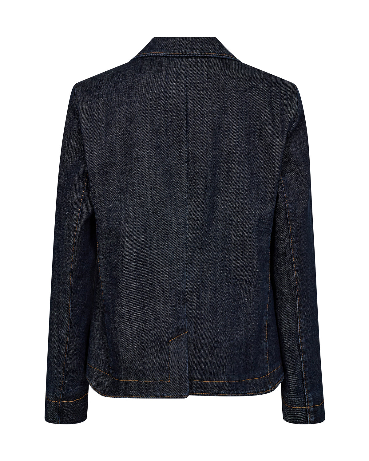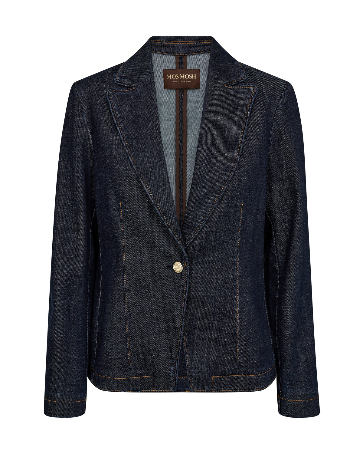 The MMDiane Nippon Blazer from Mos Mosh combines the classic blazer cut with raw denim – and the result is a stylish statement. The blazer is cut from a dark blue denim with distinctive stitching and a gold button, which adds structure and exclusivity. The design is femininely tailored and perfect for giving your everyday or office look a cool edge.