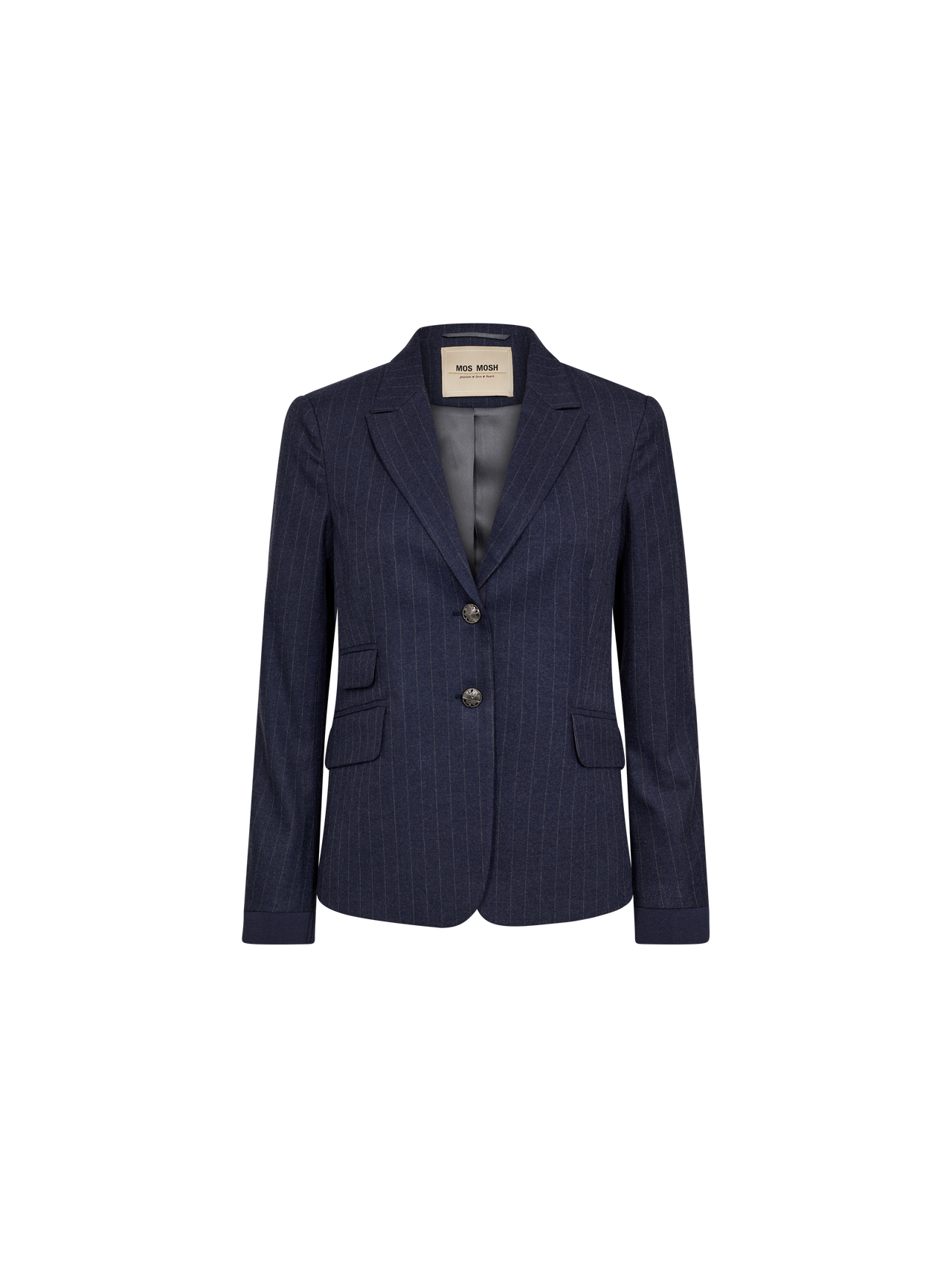 This signature MOS MOSH blazer has been reimagined with a contemporary twist. Designed in a flattering slim fit, it features embossed button closures, flap pockets, and elasticated cuffs for a subtle sporty edge. The striped pattern makes it a versatile staple.