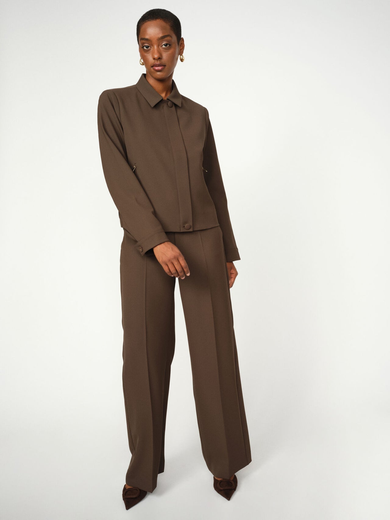 Crafted with a mid to high-rise waist and a straight fit, these tailored pants are a quintessential addition to any classic wardrobe. Featuring pressed creases and a concealed zipper closure, they exude timeless sophistication. Tuck in a feminine blouse and complete the look with a matching blazer for effortless elegance.
